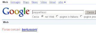 la palese inconsistenza del figlio del commercialista di Arcore sta sfiorando picchi di drammaticità – Cappellacci è il nulla che avanza offendendo anche il più piccolo barlume di intelligenza – notizie sempre fresche sul sito di Michela Murgia, da cui ho tratto la significativa immagine qui sopra. Qui si capisce che basterebbe una parvenza di cervello, sia pure automatico come quello di Google, per chiarire tutto.